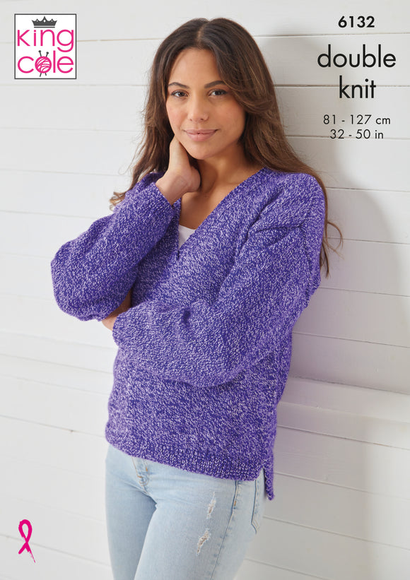 King Cole Knitting Pattern Sweater & Cardigan Knitted in Pricewise Twirly DK 6132