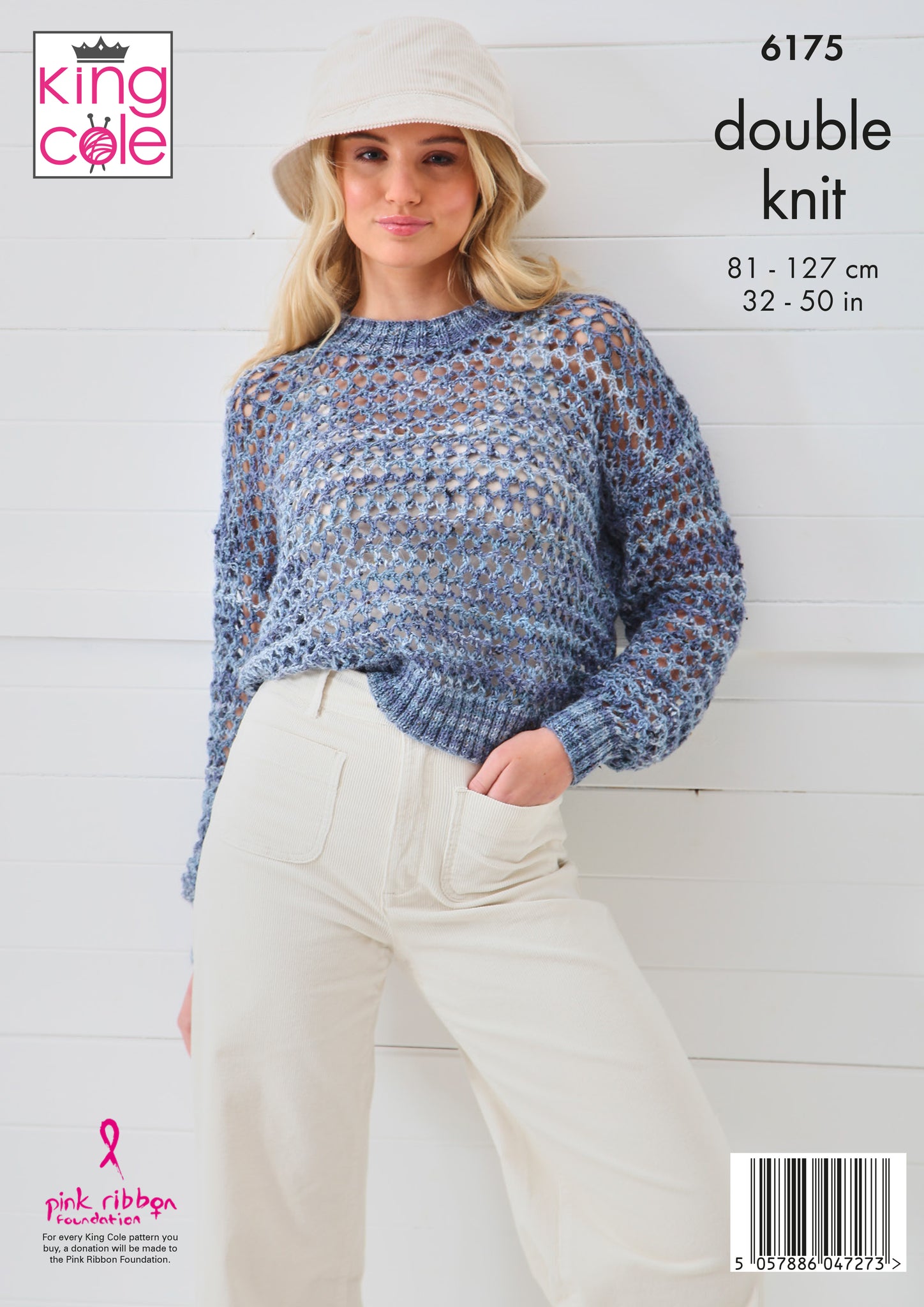 King Cole Knitting Pattern Sweater & Tank Knitted in Homespun Prism DK 6175