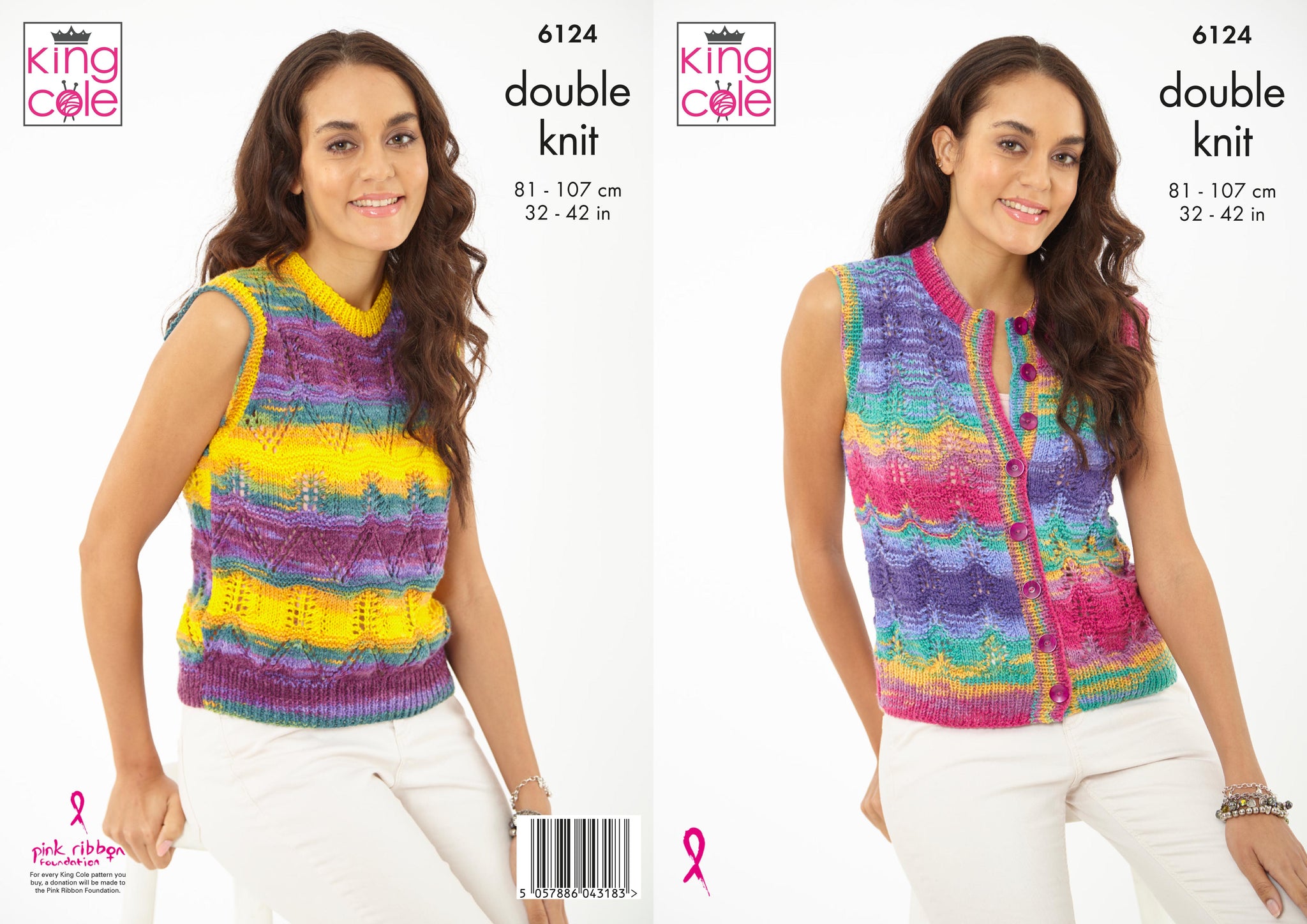 King Cole Knitting Pattern Tank Top and Waistcoat - Knitted in Tropical Beaches DK 6124
