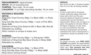 King Cole Knitting Patterns 9053 - Halloween Witch & Cauldron Tinsel