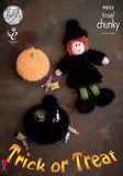 Knitting pattern by King Cole - Leaflet 9053.Halloween toys/decorations in Tinsel Chunky.Pattern Features: Witch; 43cm.