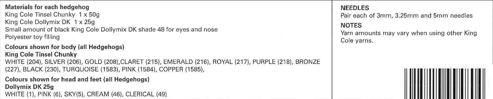 King Cole Knitting Patterns - Tinsel Chunky: 9015 - Hedgehogs