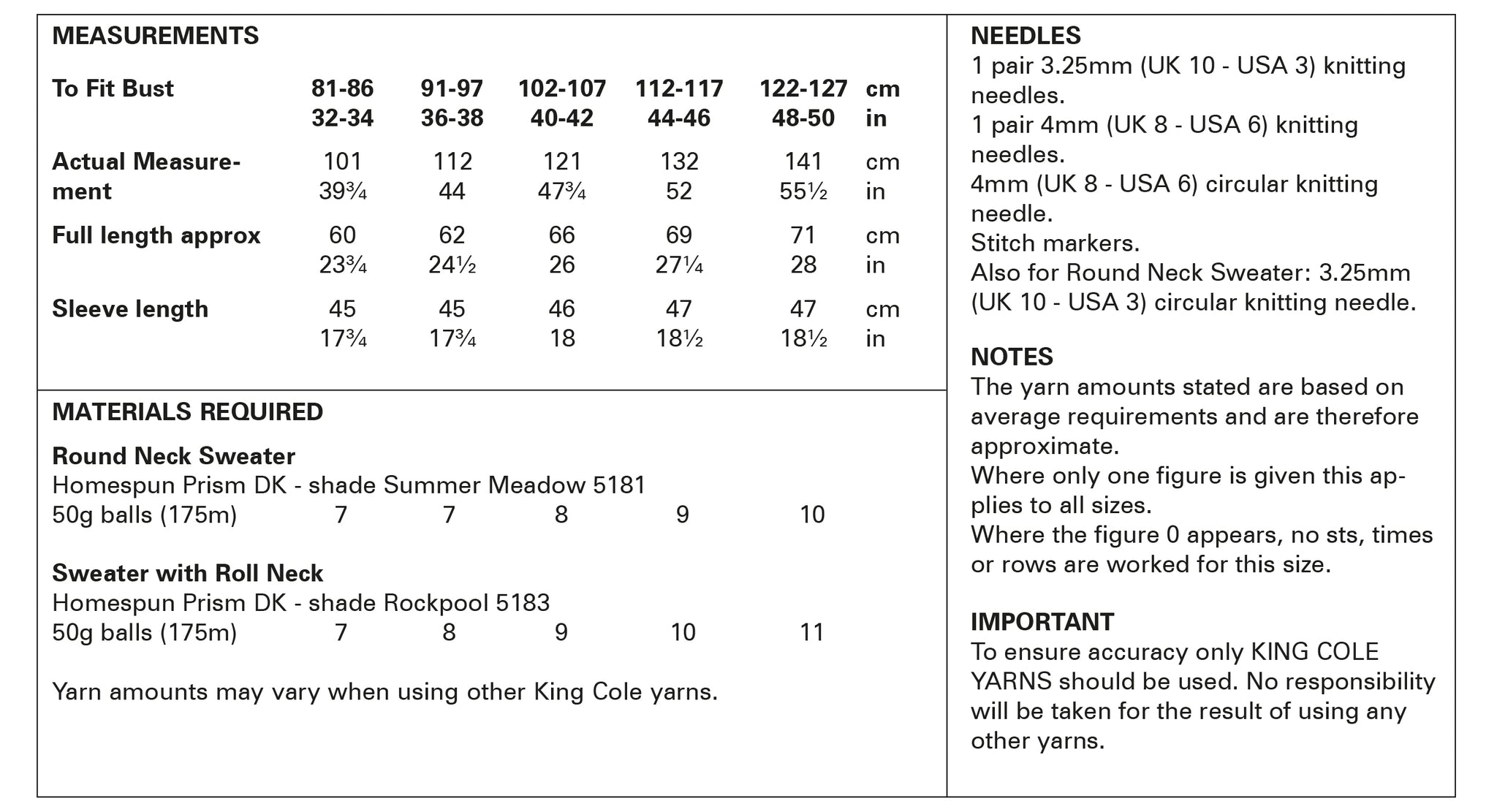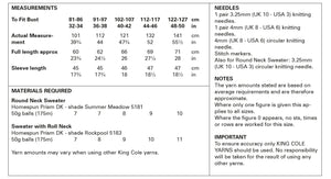 - Please see second image for suggested yarns, needle sizes and quantities required to make the garments