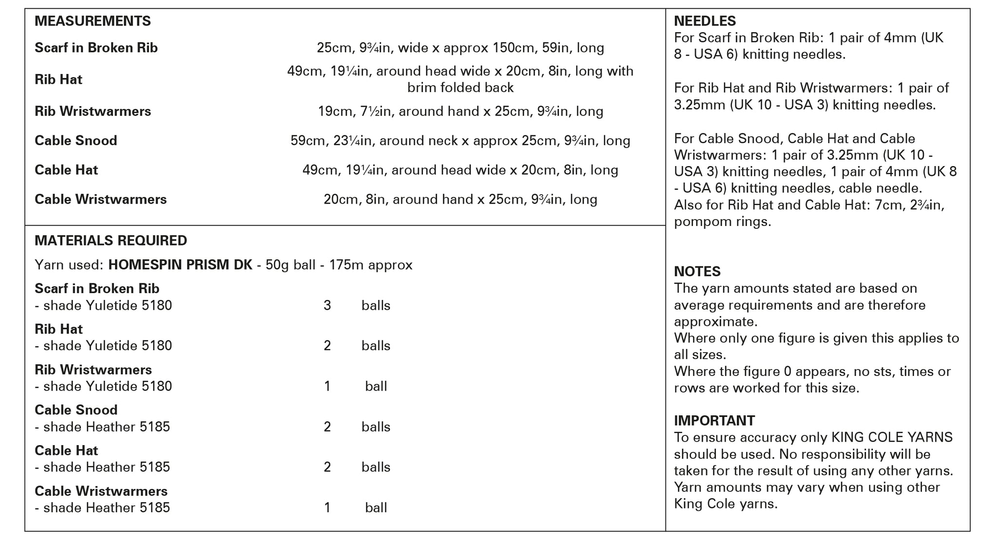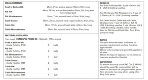 - Please see second image for suggested yarns, needle sizes and quantities required to make the garments