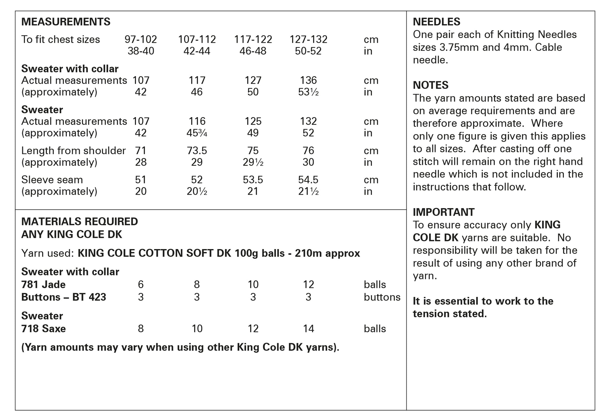 - Please see second image for suggested yarns, needle sizes and quantities required to make the garments