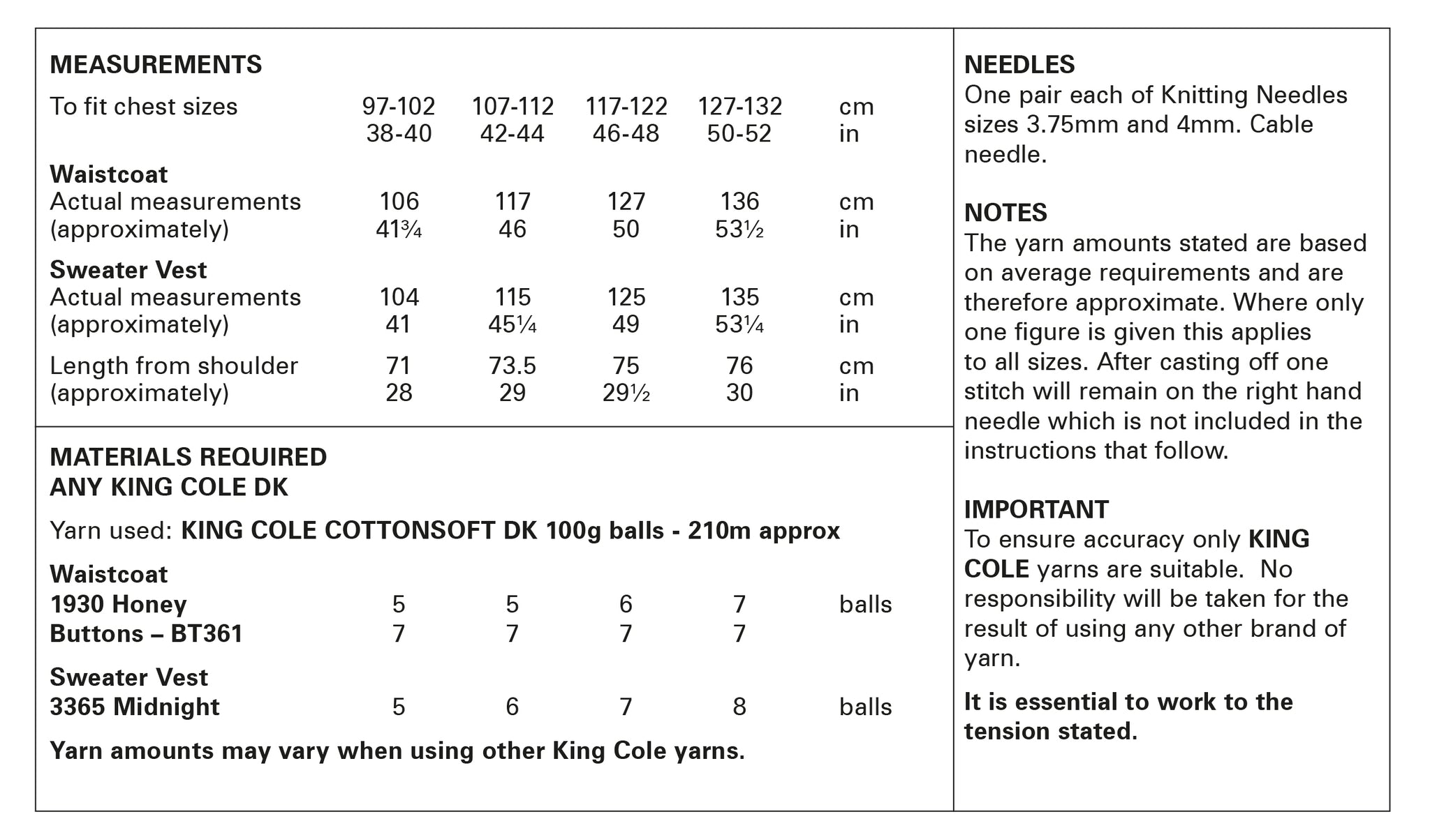 - Pattern Waistcoat and Sweater Vest in Cottonsoft DK
