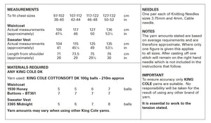 - Please see second image for suggested yarns, needle sizes and quantities required to make the garments