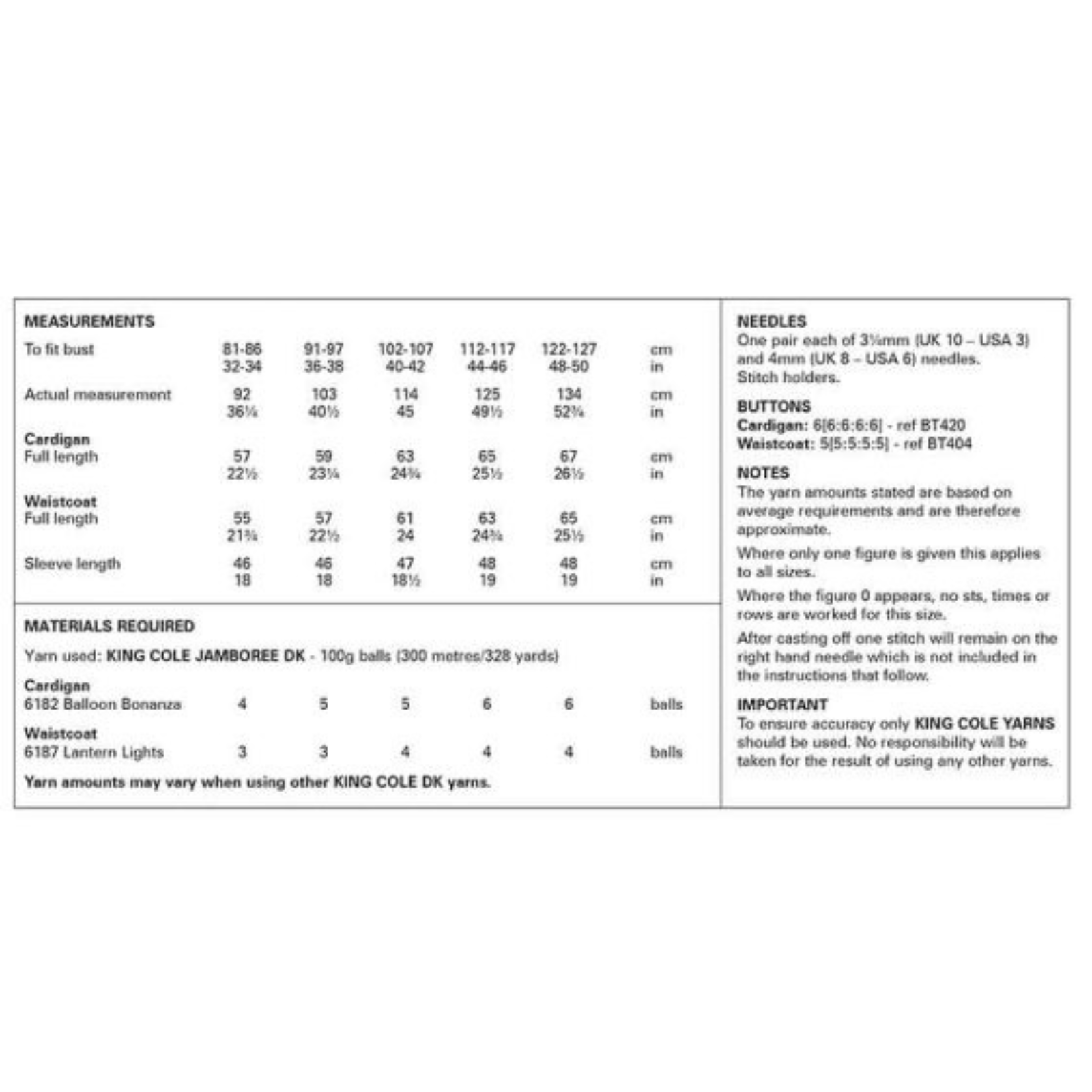 King Cole Pattern Cardigan and Waistcoat knitted in Jamboree DK 6355