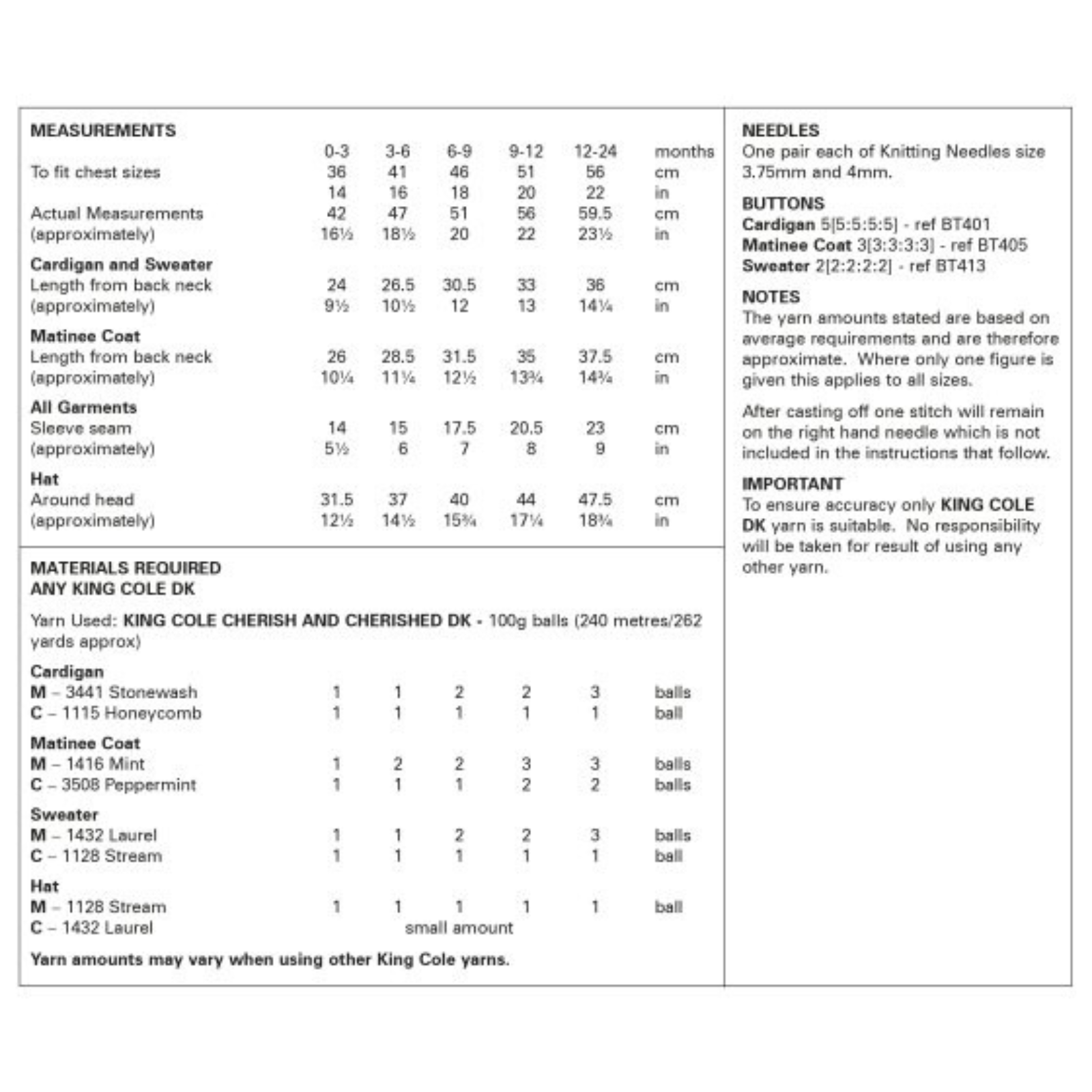 King Cole Pattern Cardigan, Sweater, Matinee Coat and Hat Knitted in Cherish DK and Cherished DK 6211