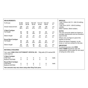 King Cole Pattern Cardigans Knitted in Cottonsoft Crystal 6300