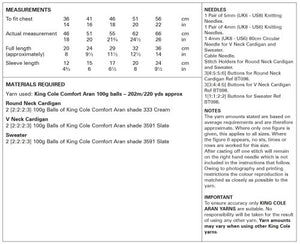 - Please see second image for suggested yarns, needle sizes and quantities required to make the garments