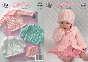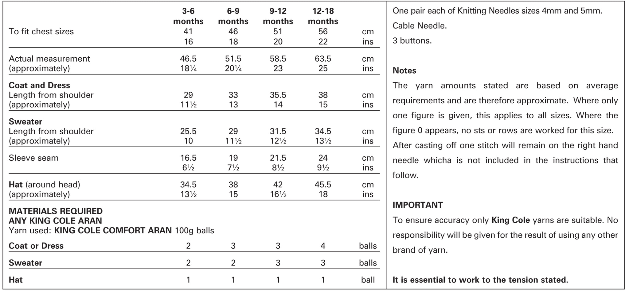 King Cole Pattern Coat, Dress, Sweater and Hat Knitted in Comfort Aran