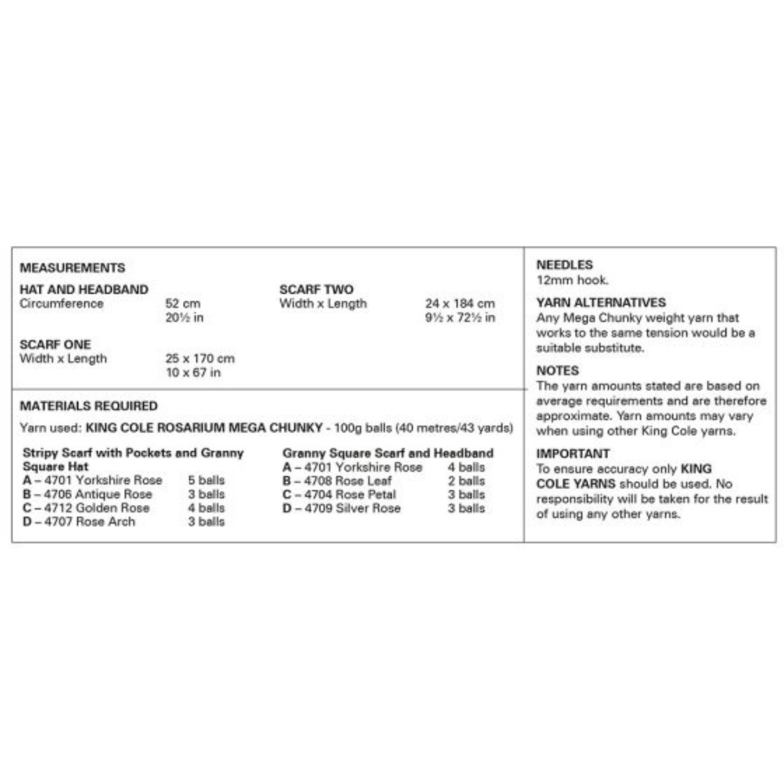 King Cole Pattern Crochet Accessories Crocheted in Rosarium Mega Chunky 6275