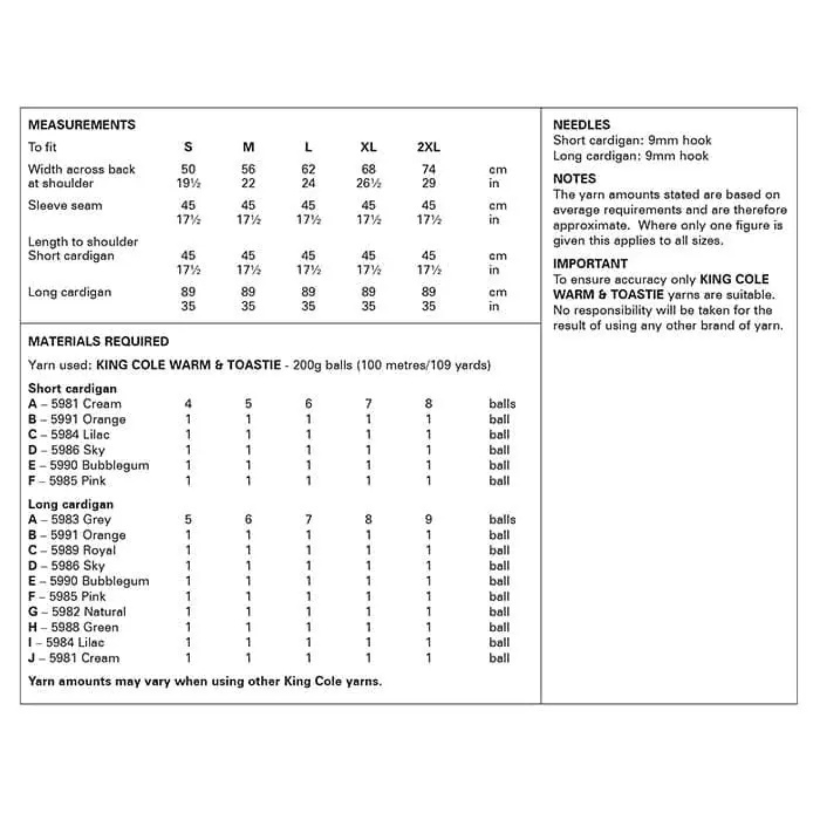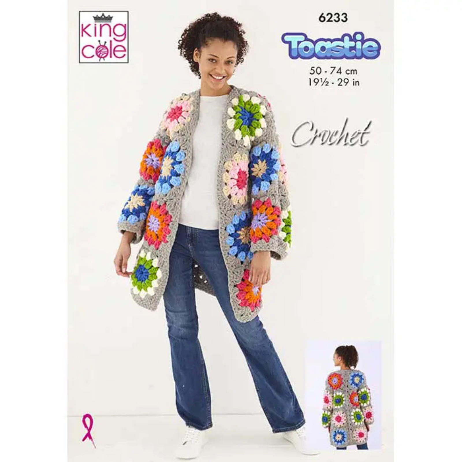 King Cole Pattern Granny Square Cropped & Long Cardigans Crocheted in Toastie Super Chunky 6233