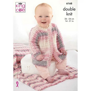 King Cole Pattern Hooded Jacket, Top, Matinee Coat & Blanket Knitted in Cutie Pie DK 6168