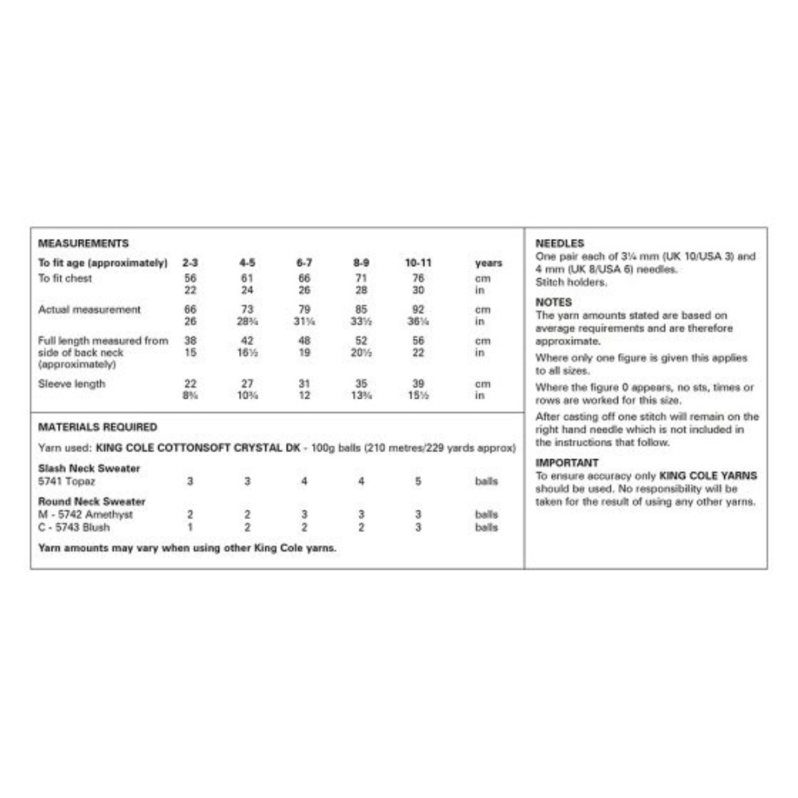 King Cole Pattern Kids Sweaters Knitted in Cottonsoft Crystal DK 6298
