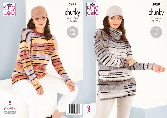 King Cole Pattern Ladies Round and Cowl Neck Sweaters: Knitted in Safari Chunky 5929