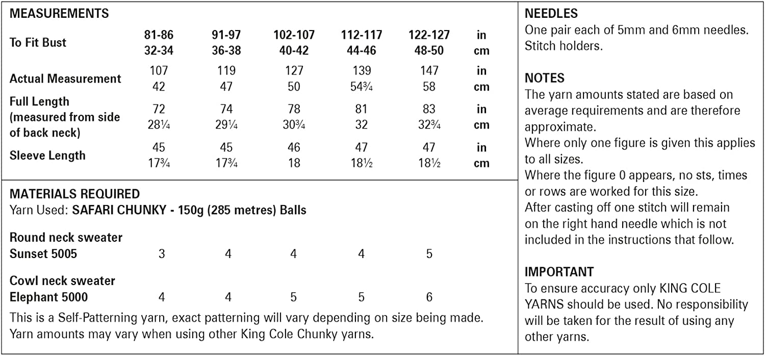 - Pattern Knitting Ladies Round and Cowl Neck Sweaters: Knitted in King Cole Safari Chunky