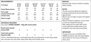 - Please see second image for suggested yarns, needle sizes and quantities required to make the garments