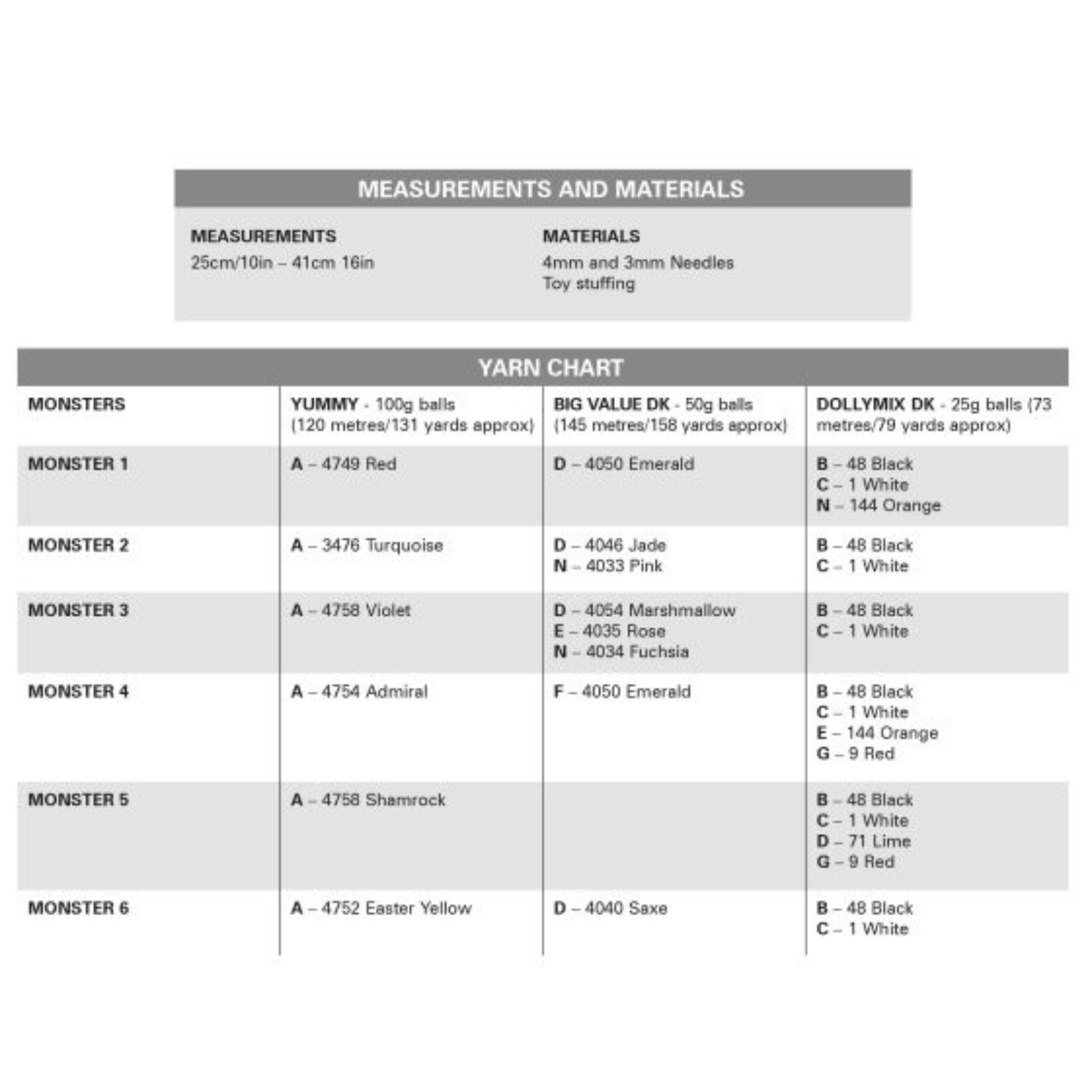 King Cole Pattern Little Monsters Knitted in Yummy 9201