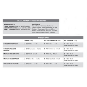 - Please see second image for suggested yarns, needle sizes and quantities required to make the garments