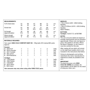 King Cole Pattern Sweater and Cardigan Knitted in Comfort Baby DK 6289