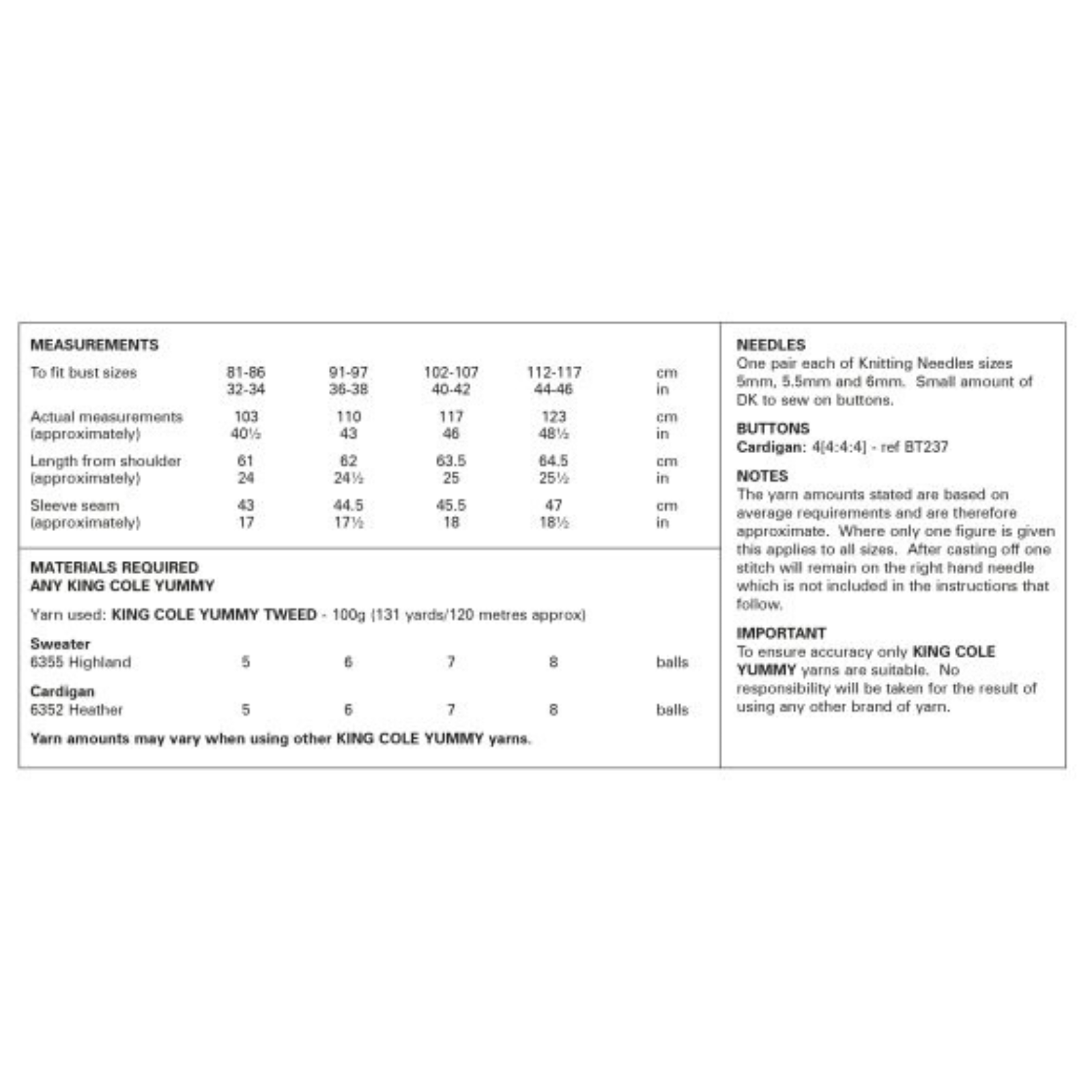 King Cole Pattern Sweater and Cardigan Knitted in Yummy Tweed 6314