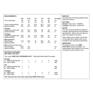King Cole Pattern Sweater, Cardigan and Hat Knitted in Cherished 4ply 6326
