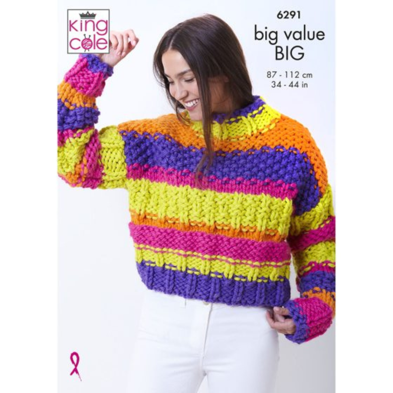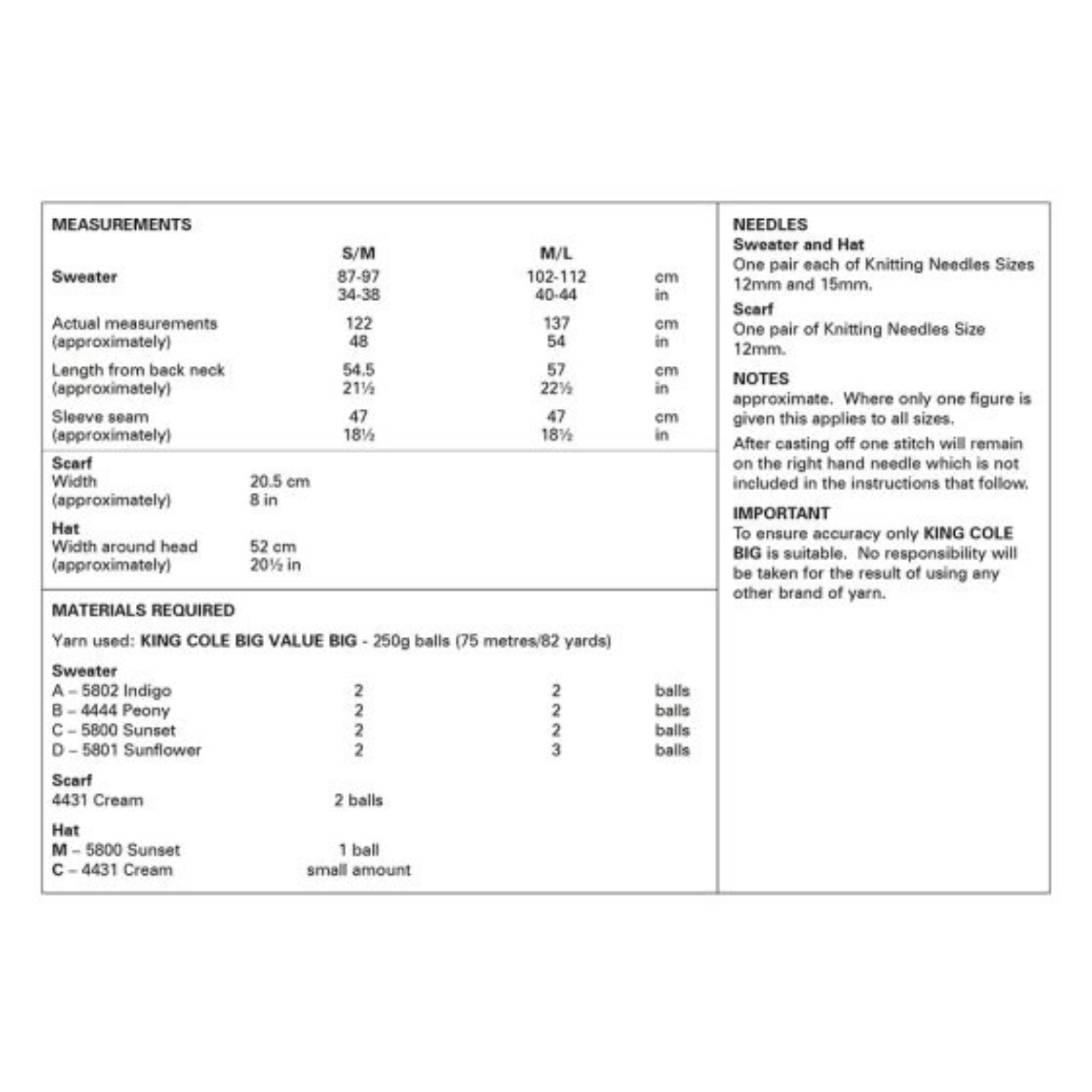 King Cole Pattern Sweater, Scarf and Hat Knitted in Big Value BIG 6291