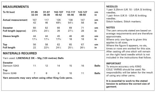 - Please see second image for suggested yarns, needle sizes and quantities required to make the garments