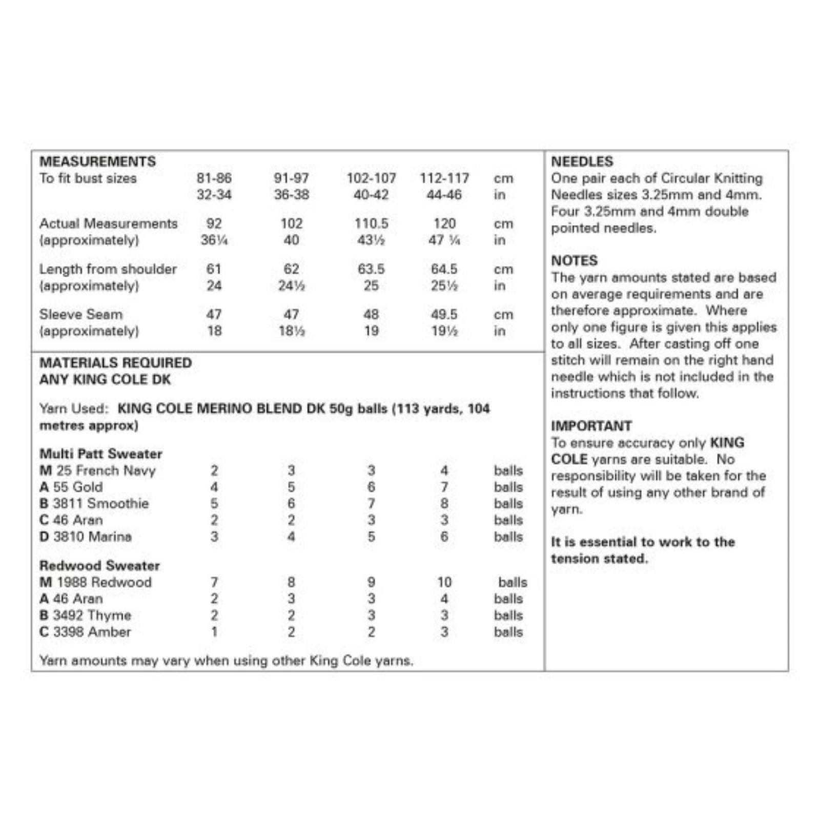 King Cole Pattern Sweaters Knitted in Merino Blend DK 50g 6151