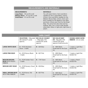 - Please see second image for suggested yarns, needle sizes and quantities required to make the garments