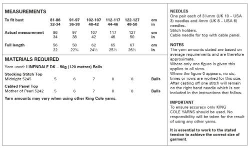- Please see second image for suggested yarns, needle sizes and quantities required to make the garments