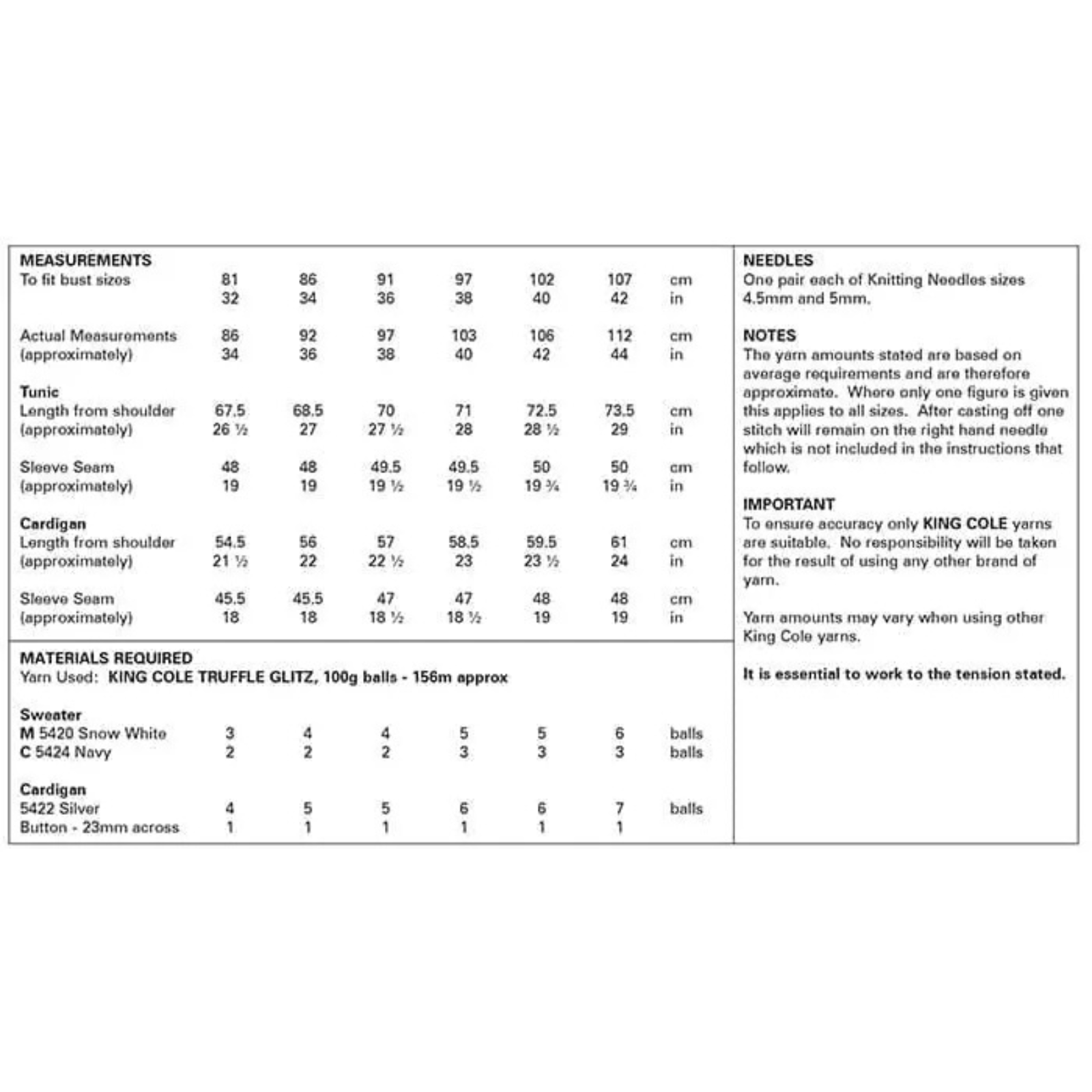 King Cole Pattern Tunic & Cardigan Knitted in Truffle Glitz 6051
