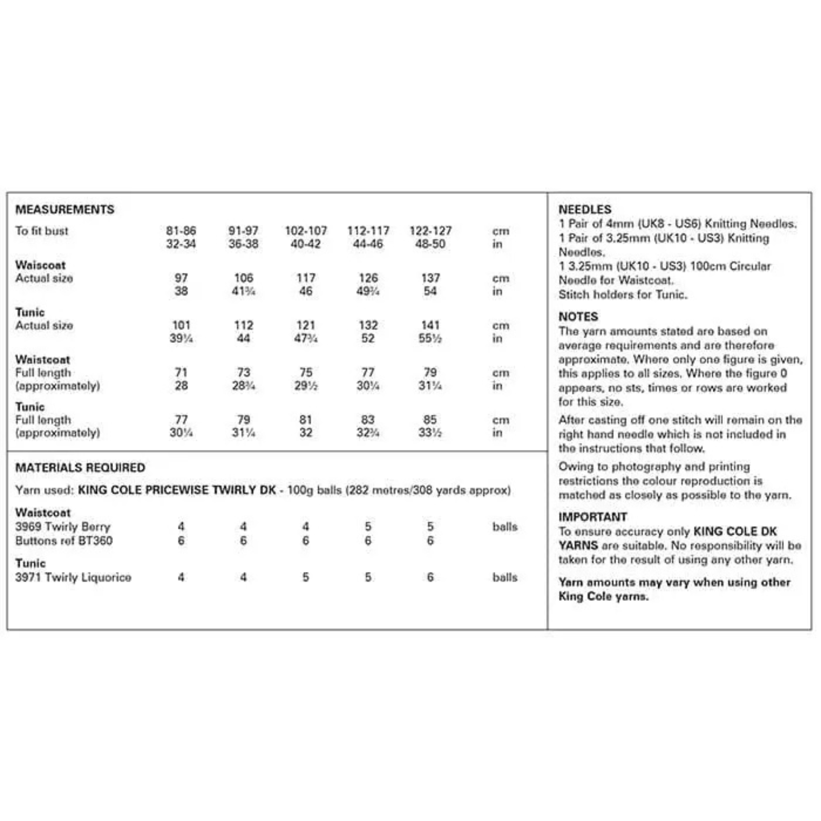 King Cole Pattern Waistcoat & Tunic Knitted in Pricewise Twirly DK 6135