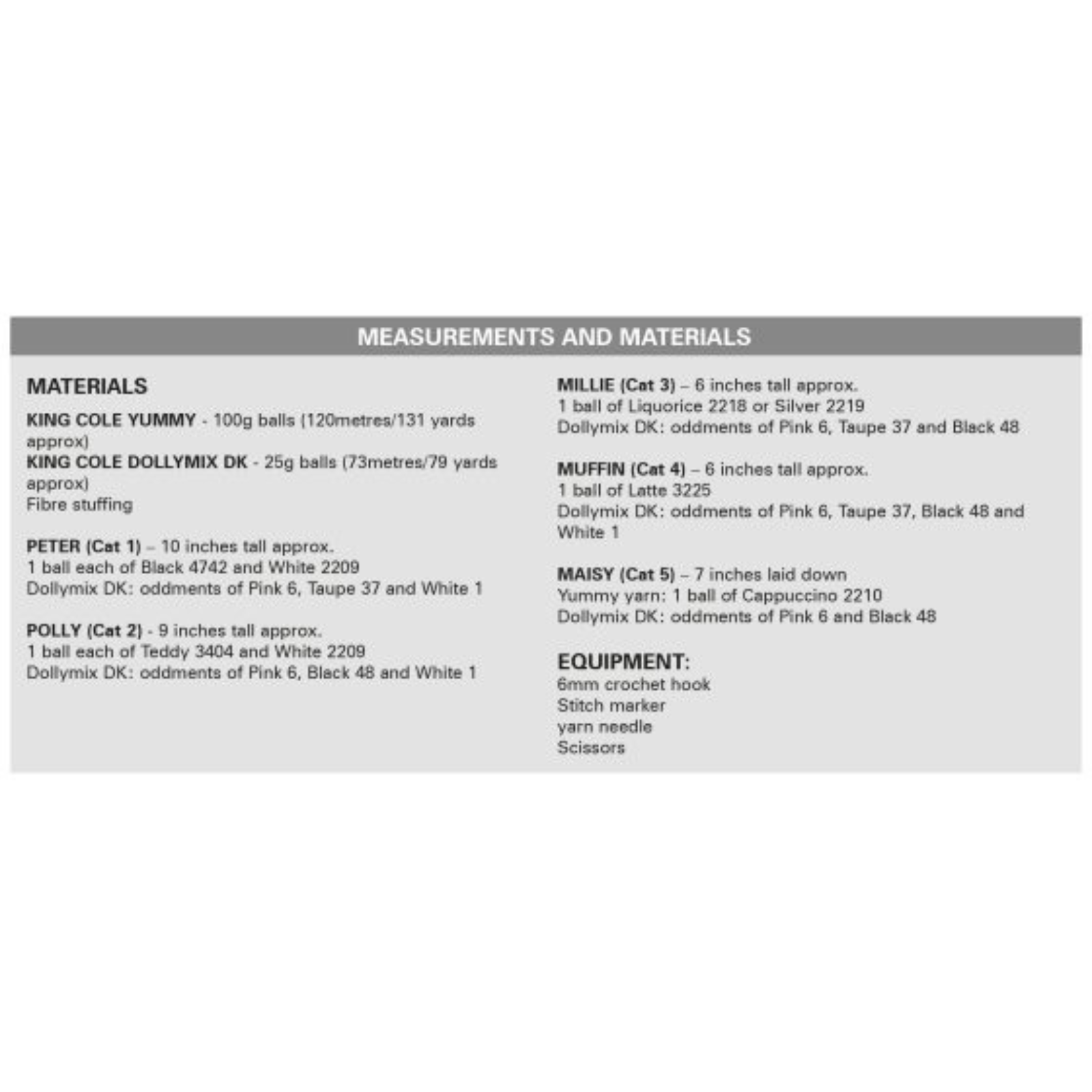 King Cole Pattern Yummy Cats Crocheted in Yummy 9192