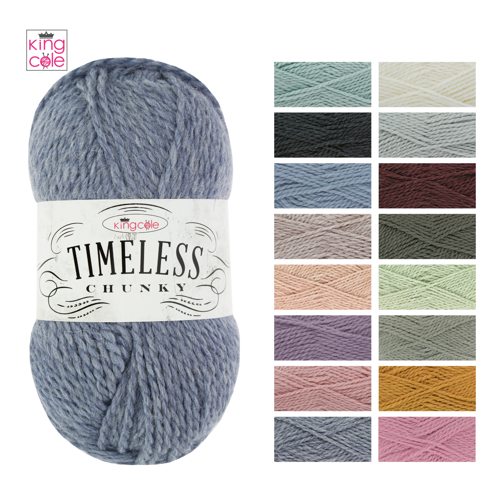 - King Cole Timeless Chunky is a super soft and cosy premium acrylic wool mixed with alpaca