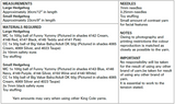 - Please see the second image for garment/item sizes and number of balls/needles required