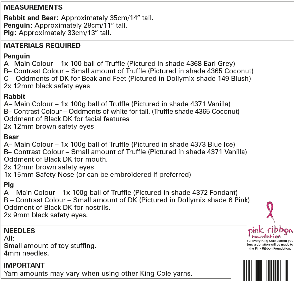King Cole Toy Pattern Flat Snuggle Toys Knitted in Truffle - Truffle 9145