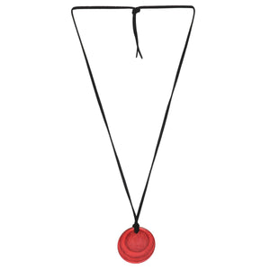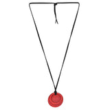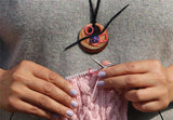 - The necklace pendant is made from the popular KnitPro coloured wood embedded with magnets and on a leather cord