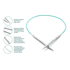 - Fixed circular knitting pin with perfectly crafted tips for fine fibre work