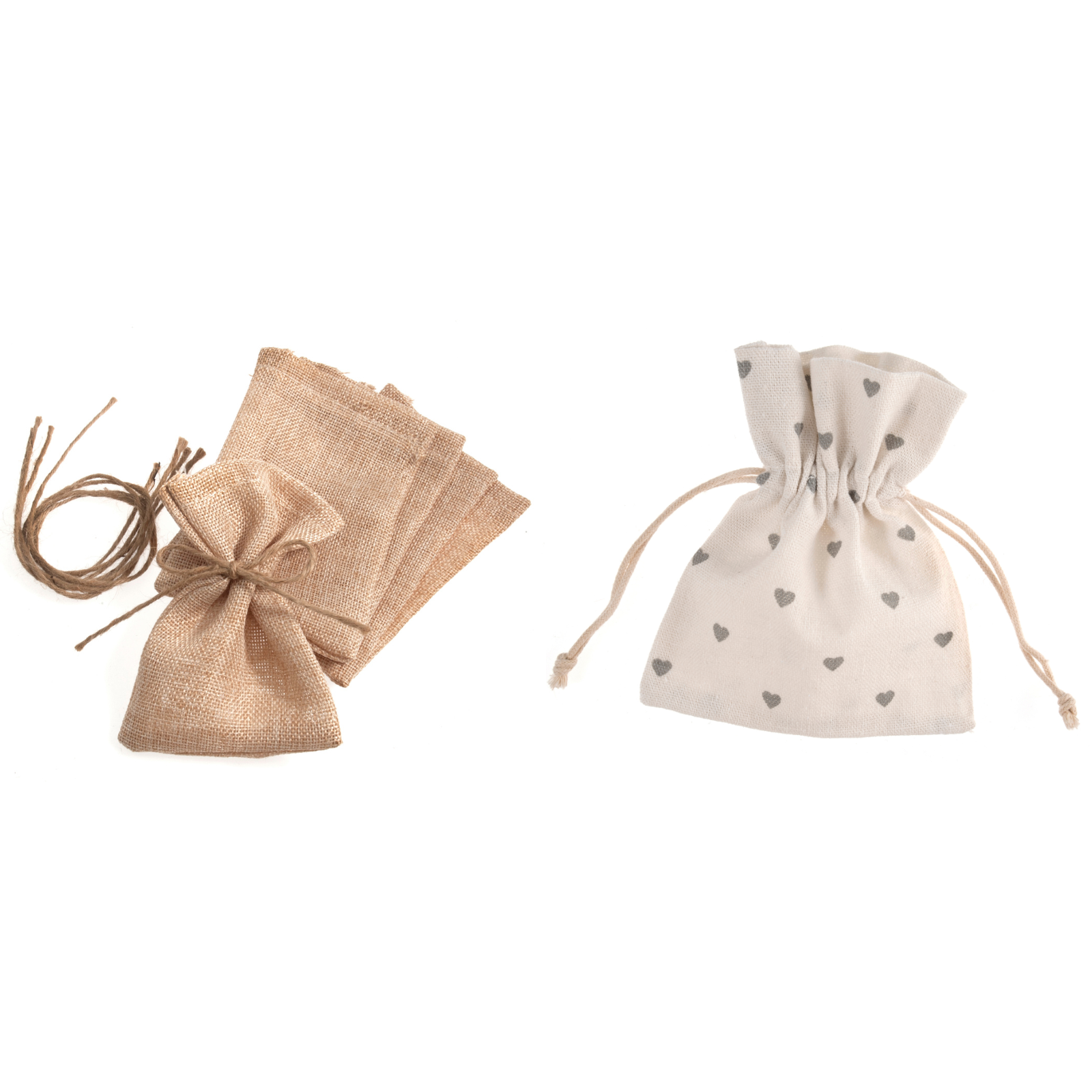 Occasions Jute/Cotton Drawstring Favour Bags - 2 Designs