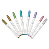 - These marker pens come in a pack of 8 amazingly vibrant, shimmery colours of Gold, Silver, Copper, Light Green, Green, Blue, Purple and Pink that all dry with a brilliant metallic finish