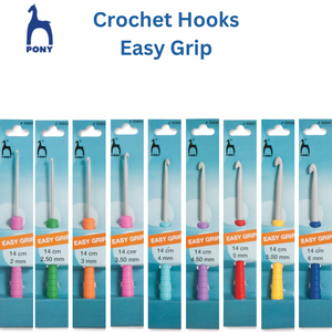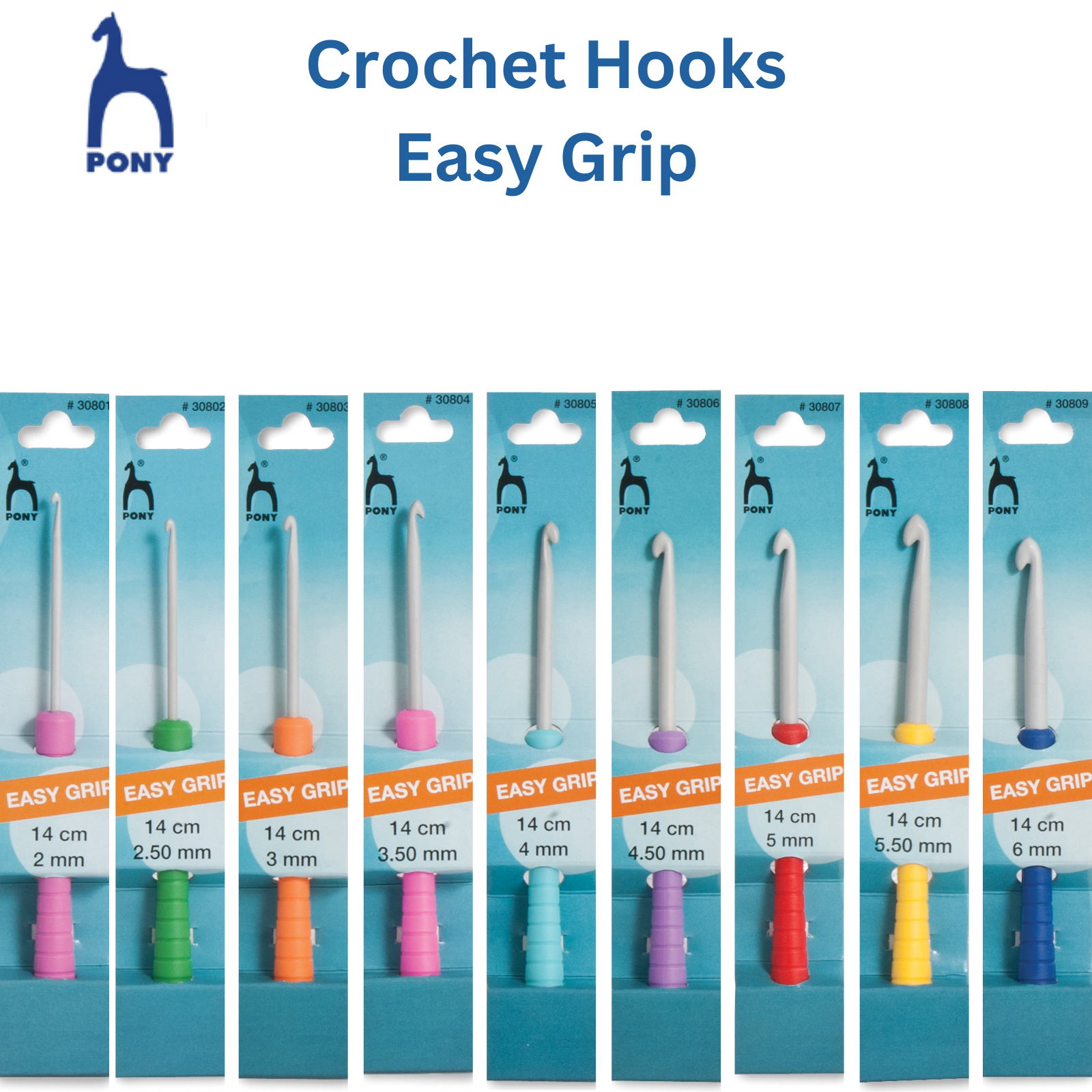 - Crochet hooks with colour-coded handles and ridges for a better grip