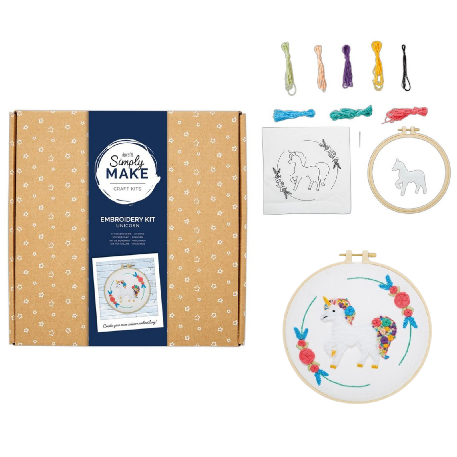 - Craft kit includes all the craft supplies needed including embroidery hoop, pre-printed fabric, pre-cut fabric piece, threads, a needle and a handy set of instructions to help you