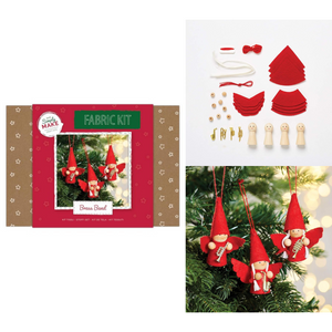 - Christmas craft kit includes everything needed such as pre-cut felt shapes, pre-cut fabric shapes, knitted shapes, felting wool, wooden beads, stuffing, hanging twine, thread, needles and a helpful set of instructions