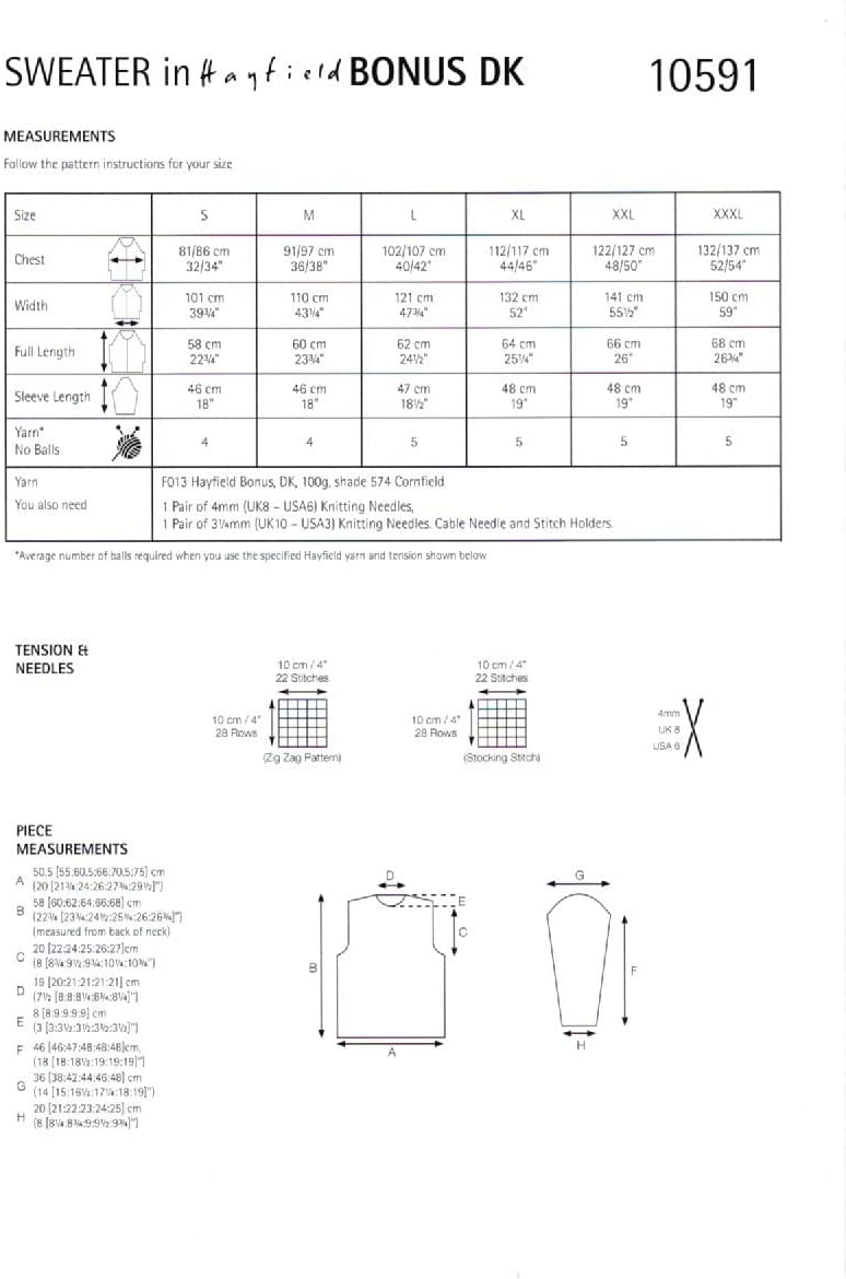 Sirdar Hayfield Bonus Double Knit Knitting Pattern, Round Neck Sweater 10591