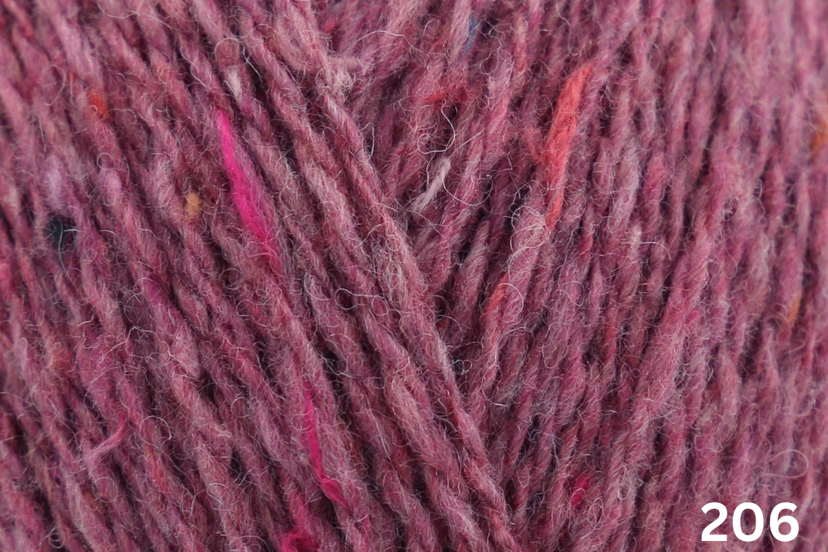 - Each batch of this tweedy recycled hand knitting yarn is unique, so don’t forget to double check the dye lots on your ball bands before you start your project