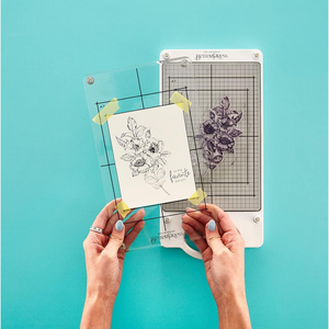 - Next, tape Card Panel on the Platen (clear top plate with registration marks).