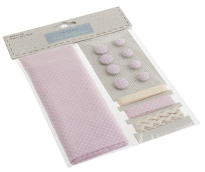 Trim Collection Cotton Craft Set - Pink Polka Dot Fabric Buttons Ribbon